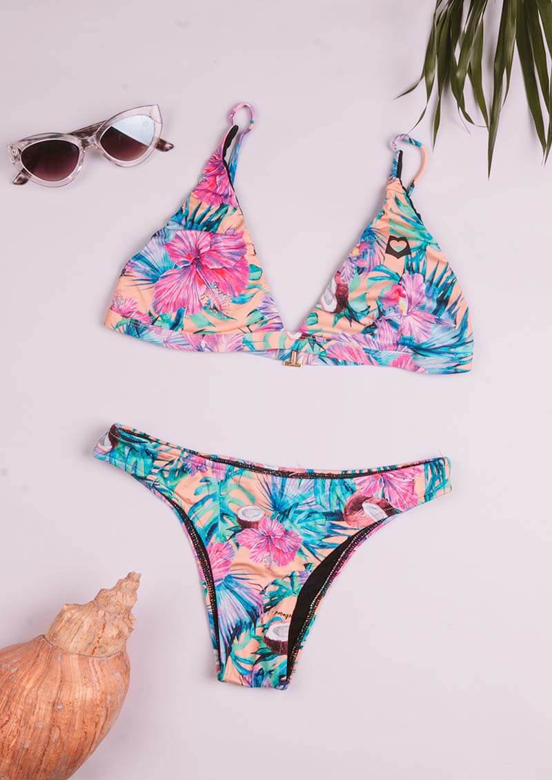 O nosso modelo de biquíni classic está de volta ao nosso site em um versão melhorada, agora com o top mais alongado e sem o viés para ficar mais charmoso, além de possuir um silk com o nosso logo em preto. Nesta referência o biquíni é na estampa floral relax com o forro em preto. Possui o top com alcinha ajustável que não agride a cervical para usar como preferir e a calcinha fixa e mais larguinha na lateral, para quem procura um biquíni mais confortável e seguro.