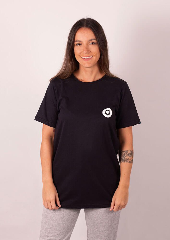 Camisetão unisex em malha 100% algodão preta com estampa nas costas com a frase “Reduza, reuse, recicle, repita”, para refletir sobre o nosso consumo e o nosso descarte. Quando for jogar algo fora, lembre-se: não existe fora.