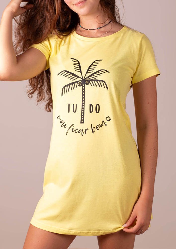 Com estampa de coqueiro escrito “tudo vai ficar bem”. Ideal para dar uma voltinha com as suas amigas, usar como saída de praia, ou ficar de boas confortável em casa.